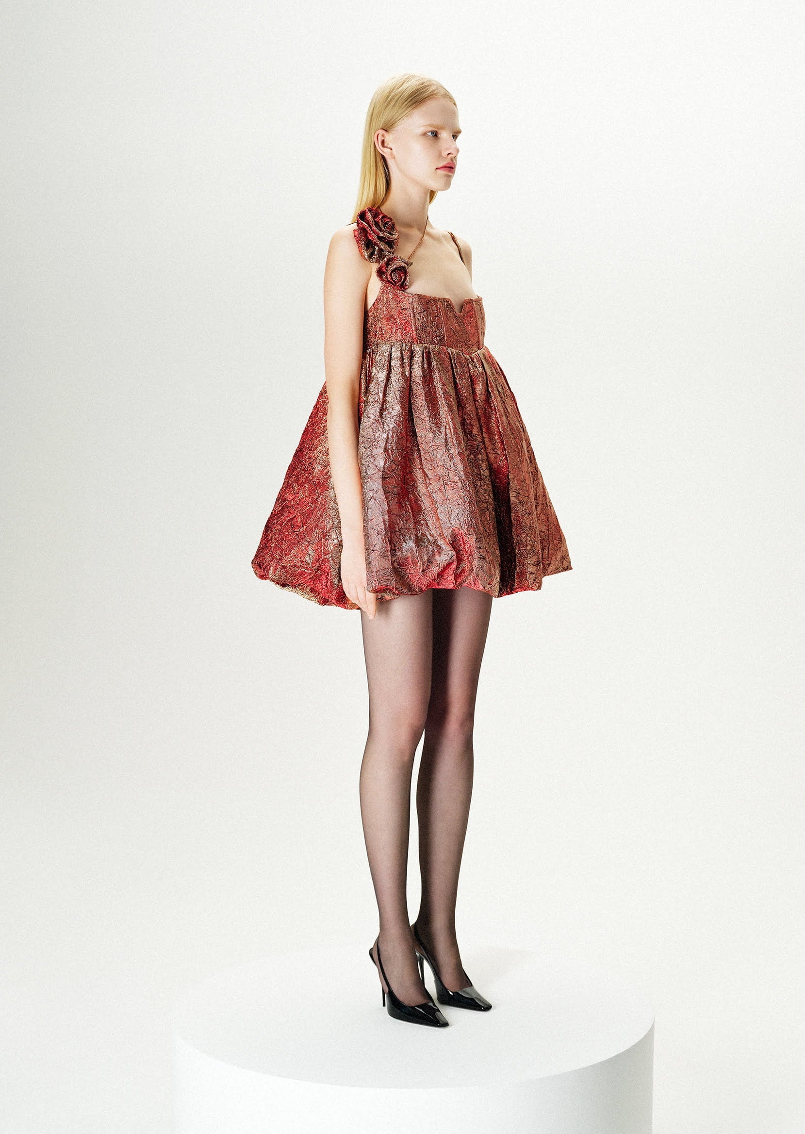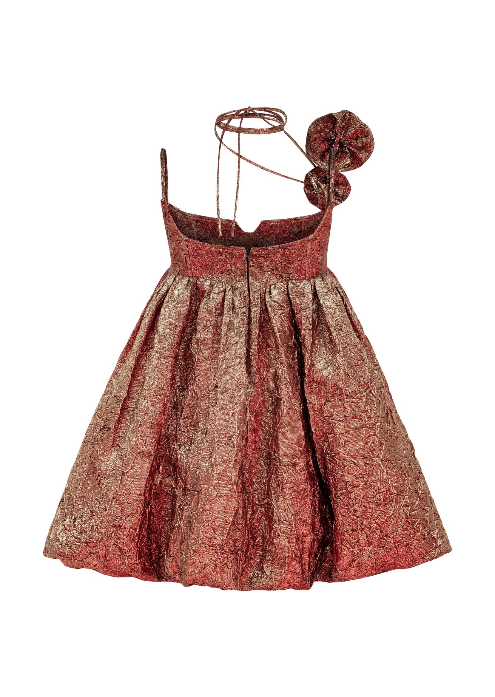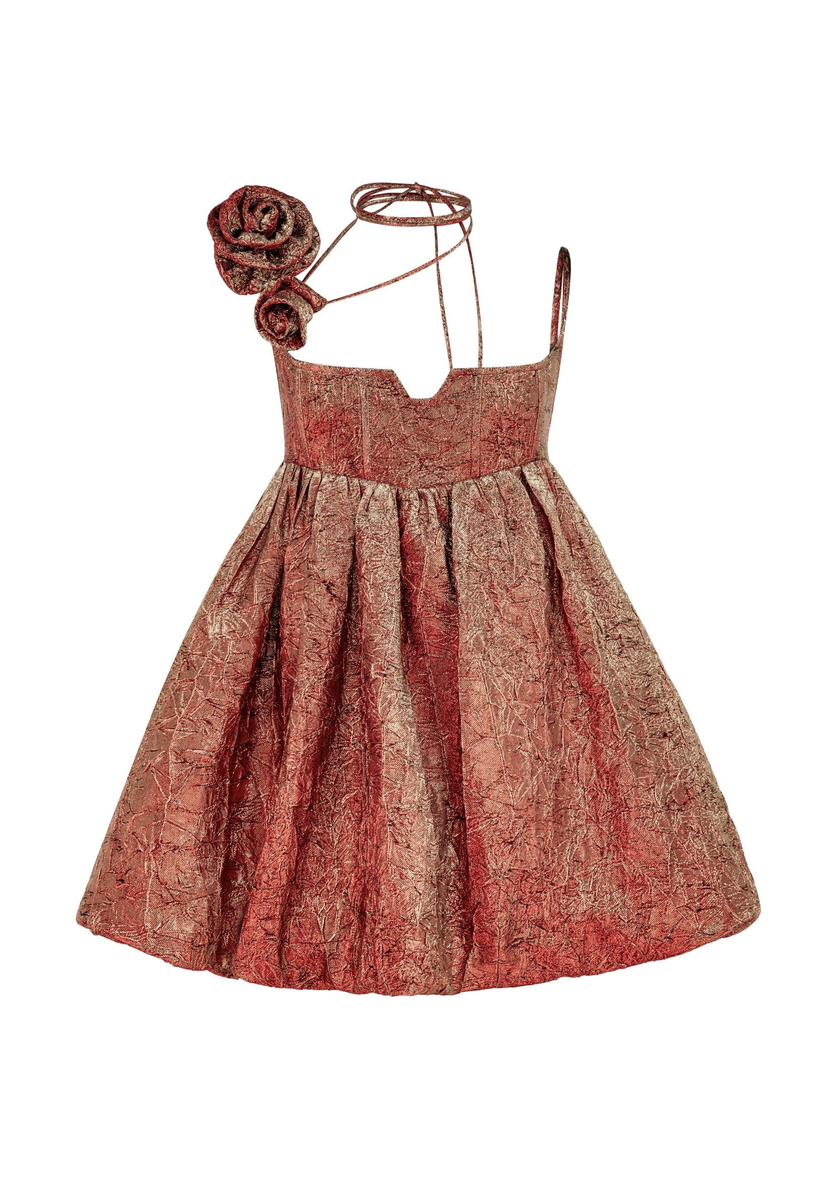 The “Arianna” dress, with decorated eye catching rose details that will make you stand out on the most special nights with its ballon form and festive color options; the gold sparkling red and the elegant black.