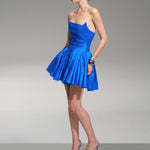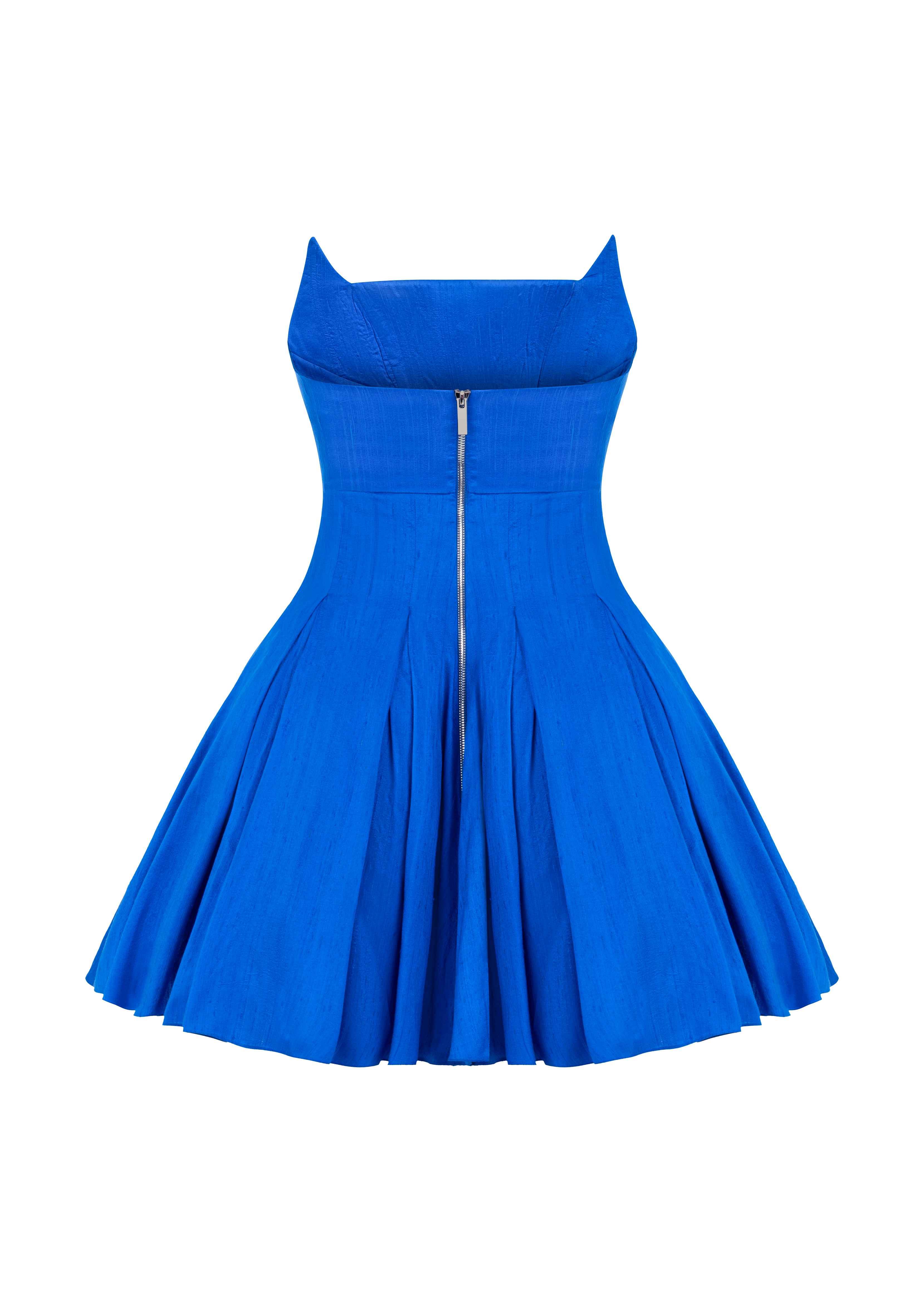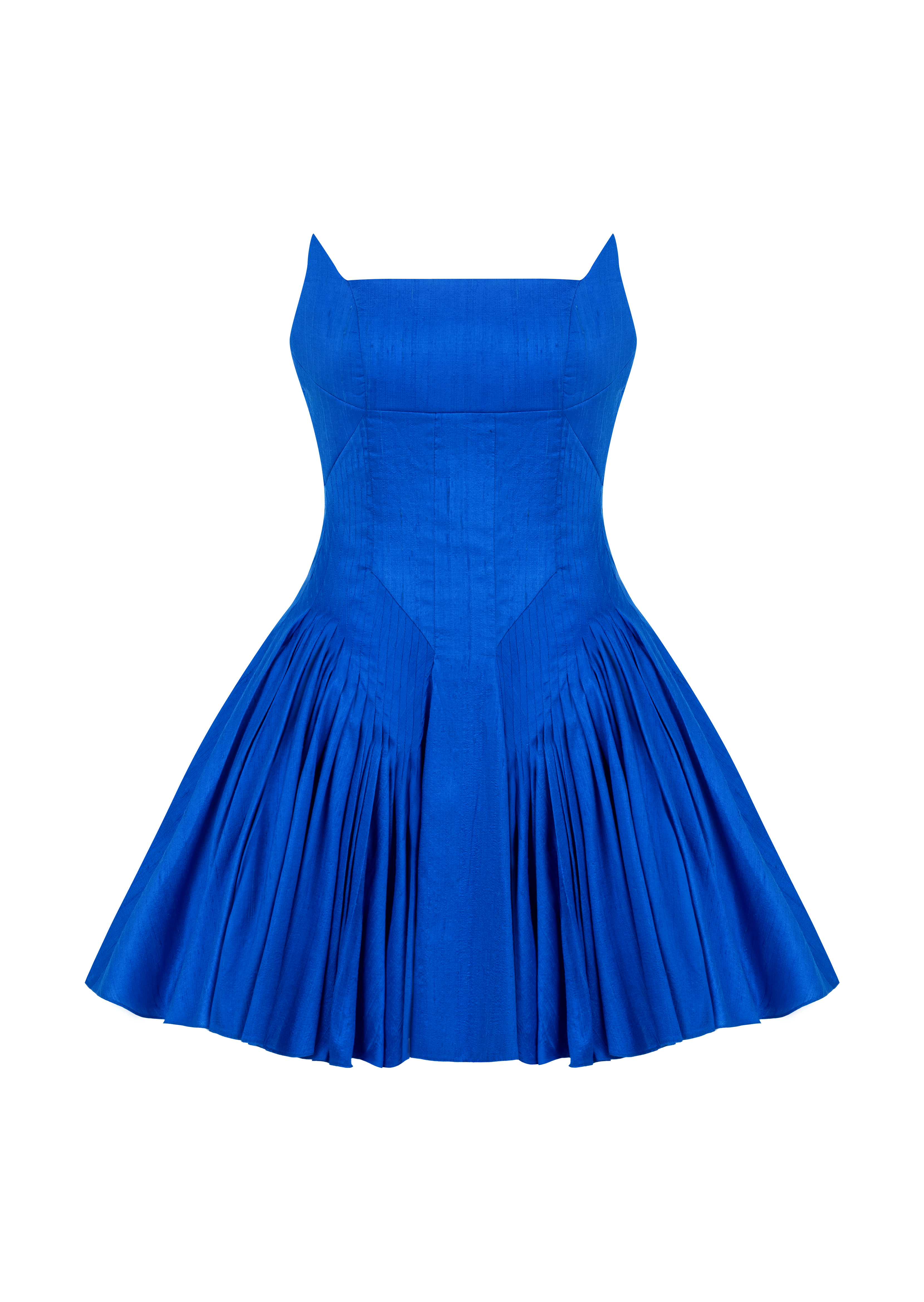 The Camille dress stands out with its bright colour and light, flattering shape. The structured bodice and flowing skirt create a look that feels modern yet effortless. Easy to wear and eye-catching, it’s made for moments that call for a touch of shine.