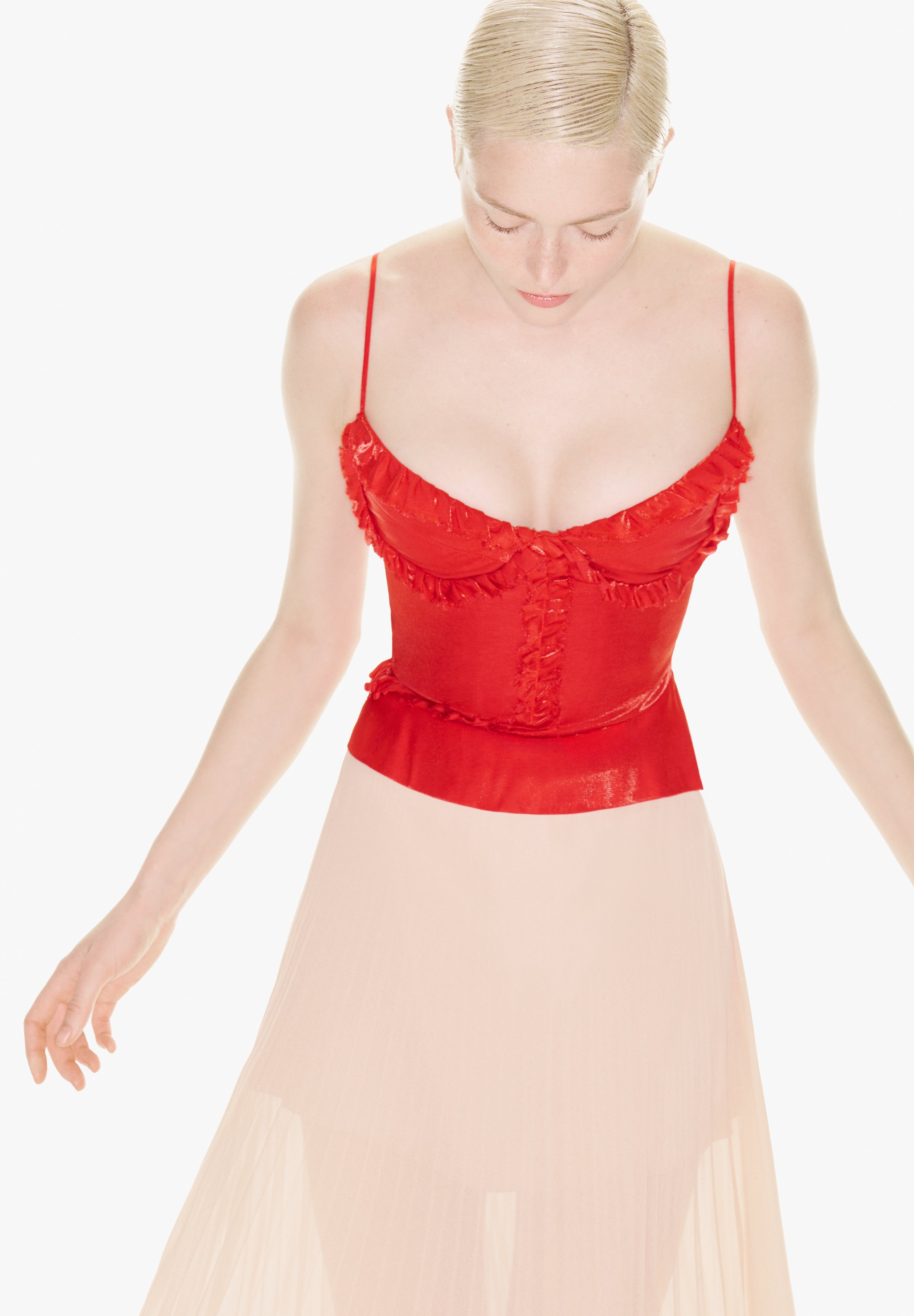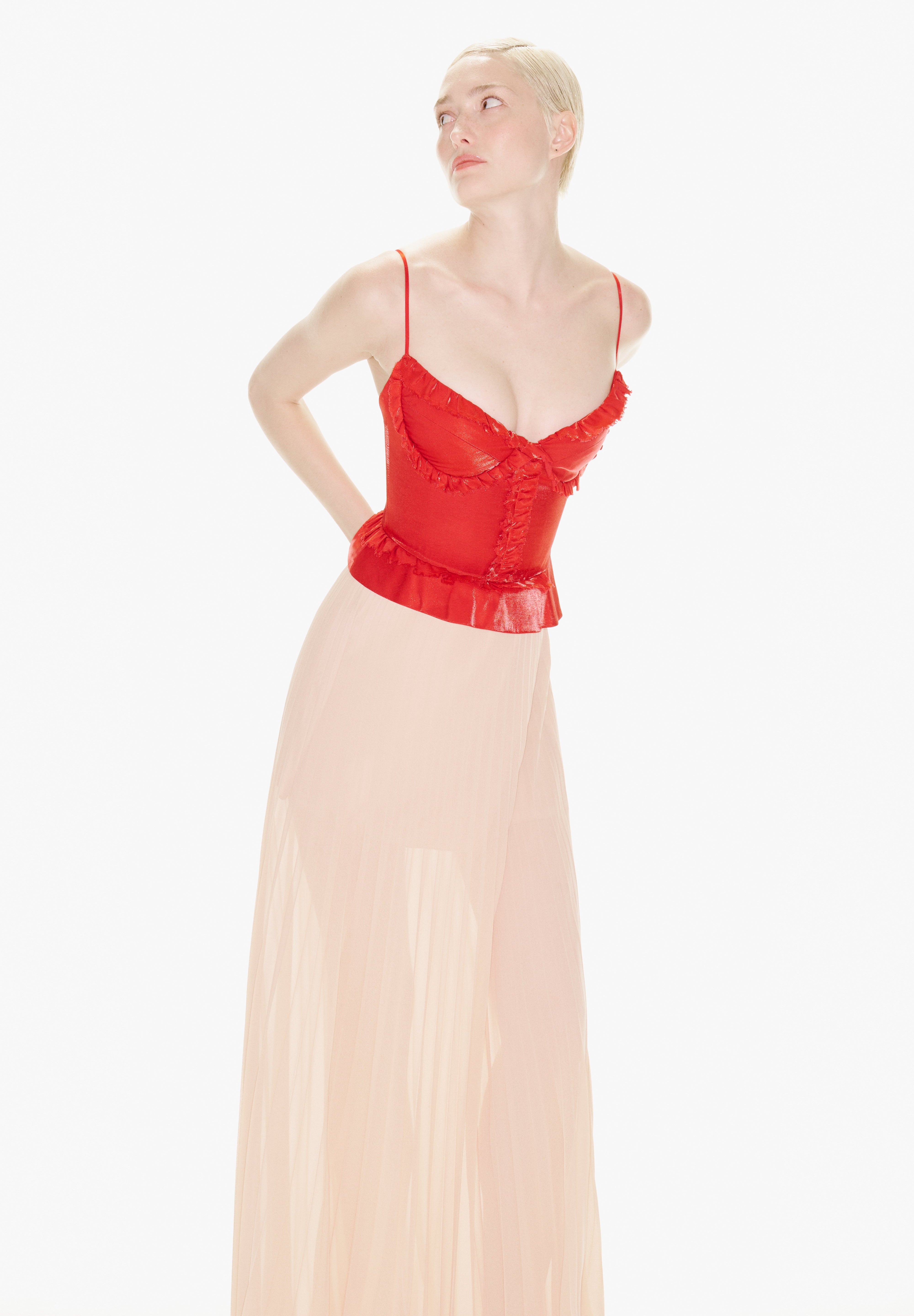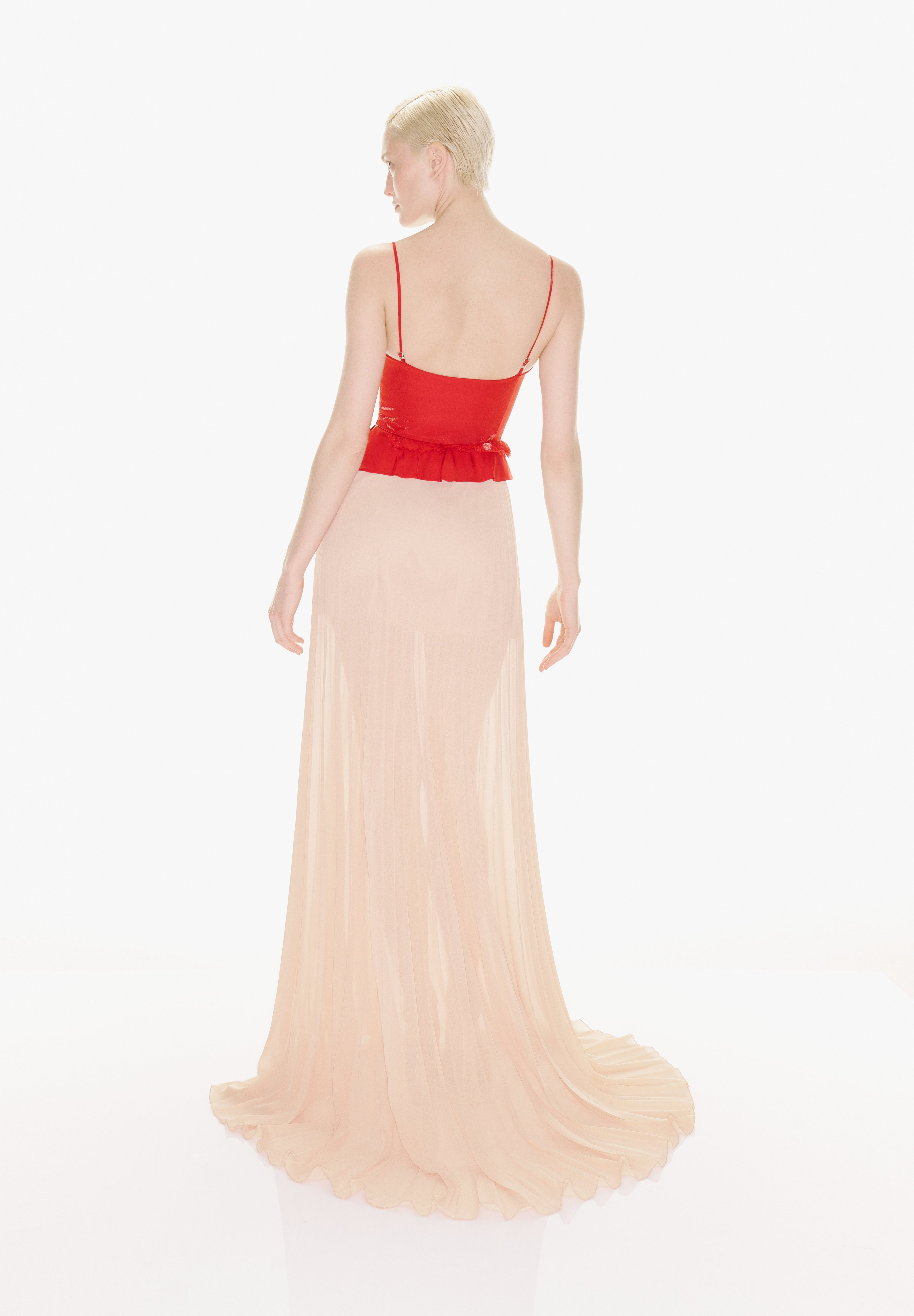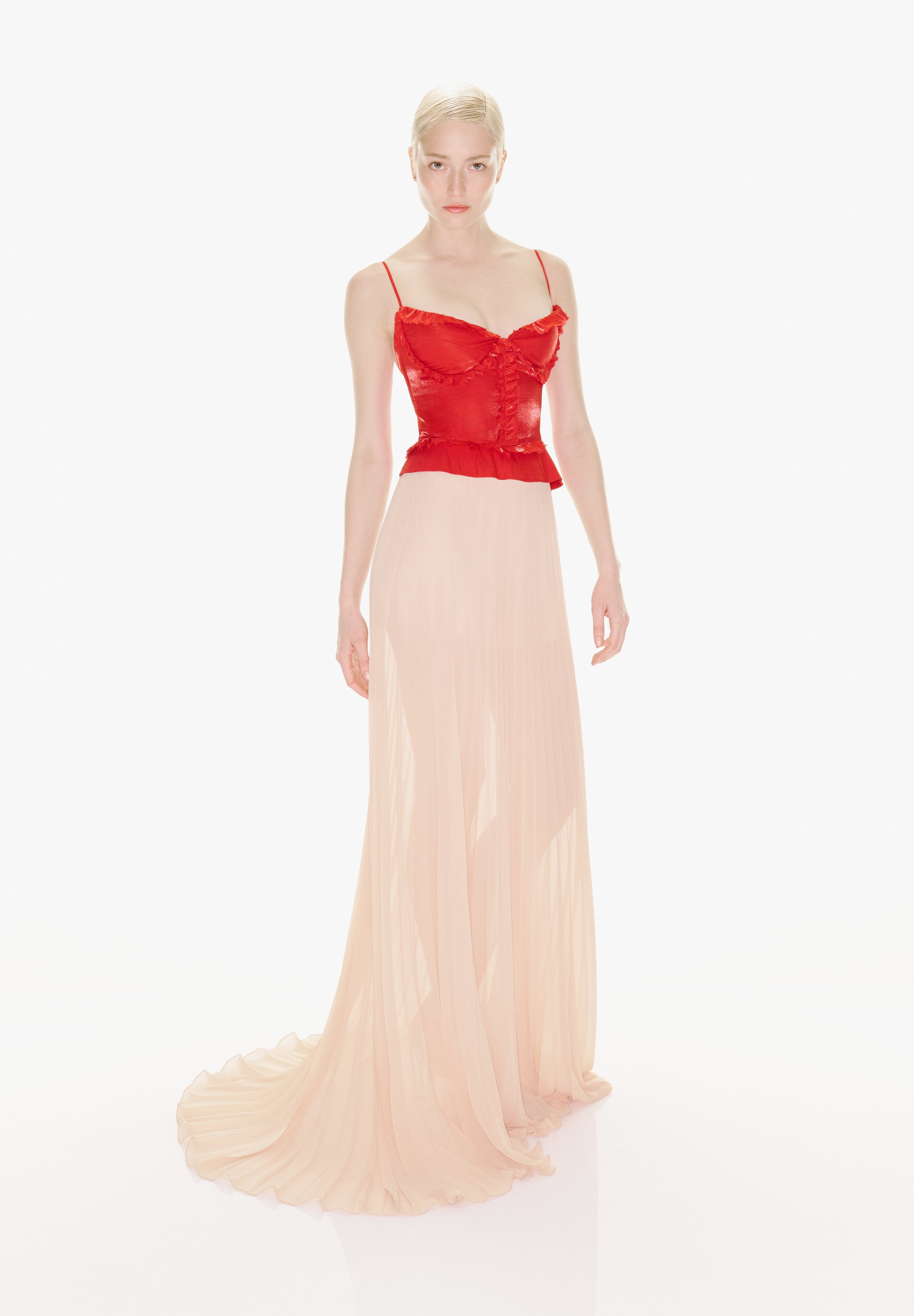 The "Lilith" dress, consisting of powder and red colour blocks, adapts to summer with its energetic attitude.