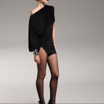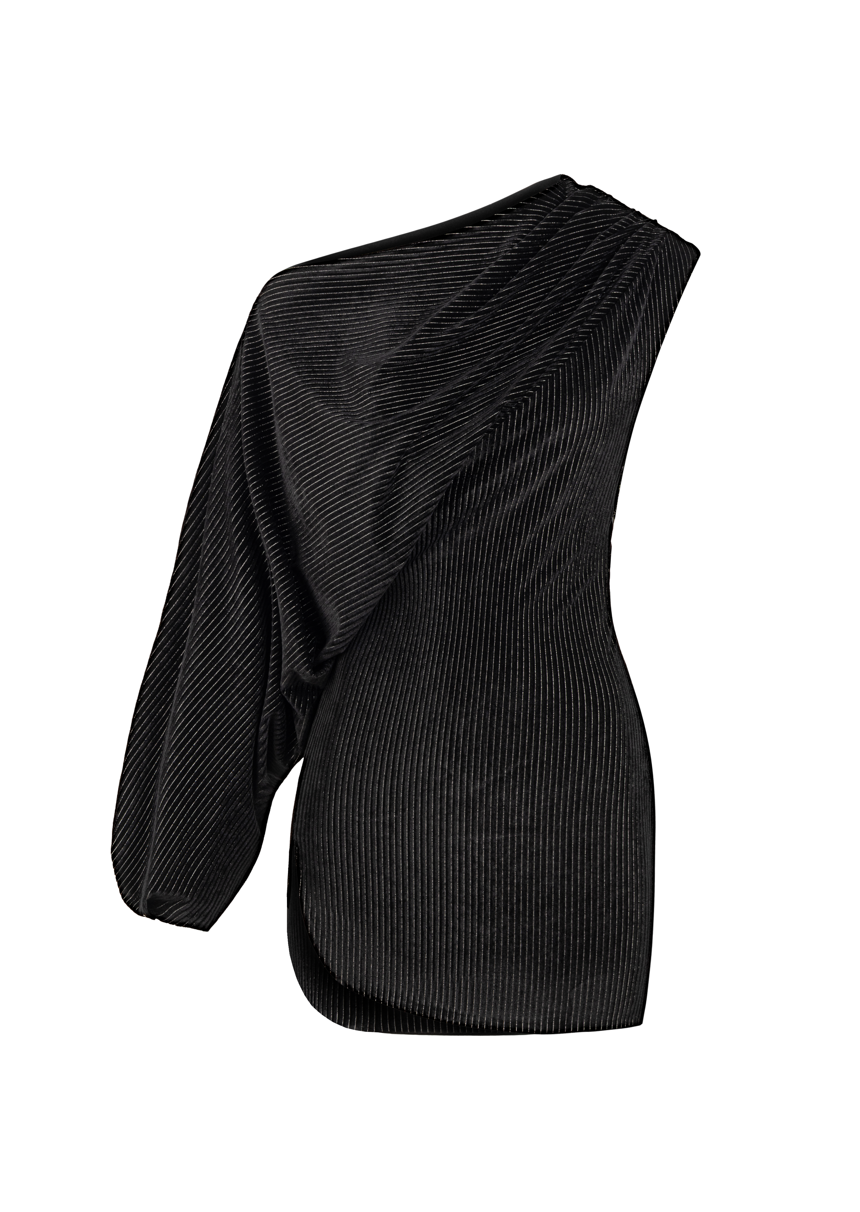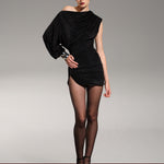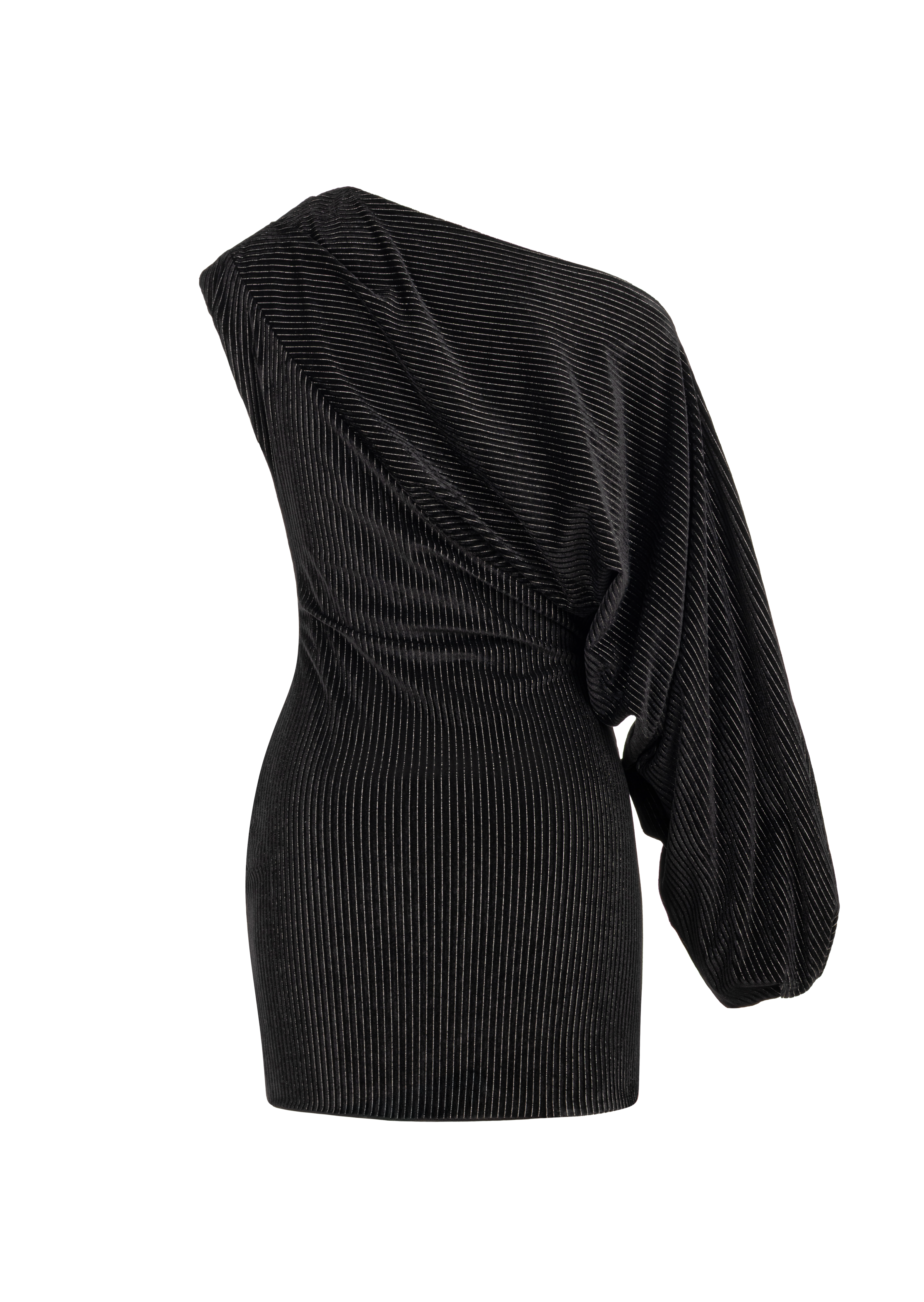 With its asymmetric neckline and sculpted fit, this design stands out for its balance of elegance and edge. The Lily dress brings movement and definition to the silhouette, turning understated black into something unforgettable