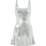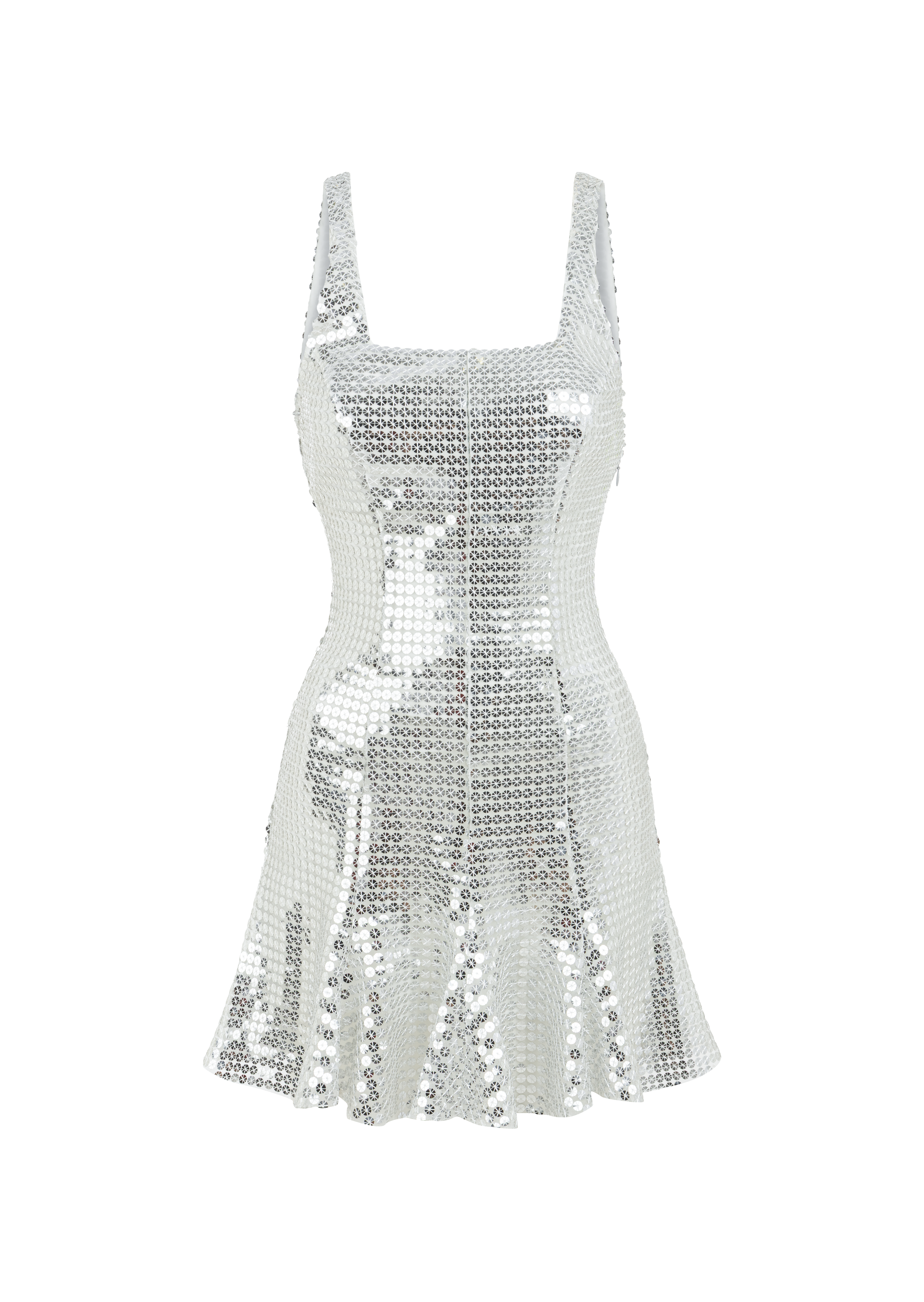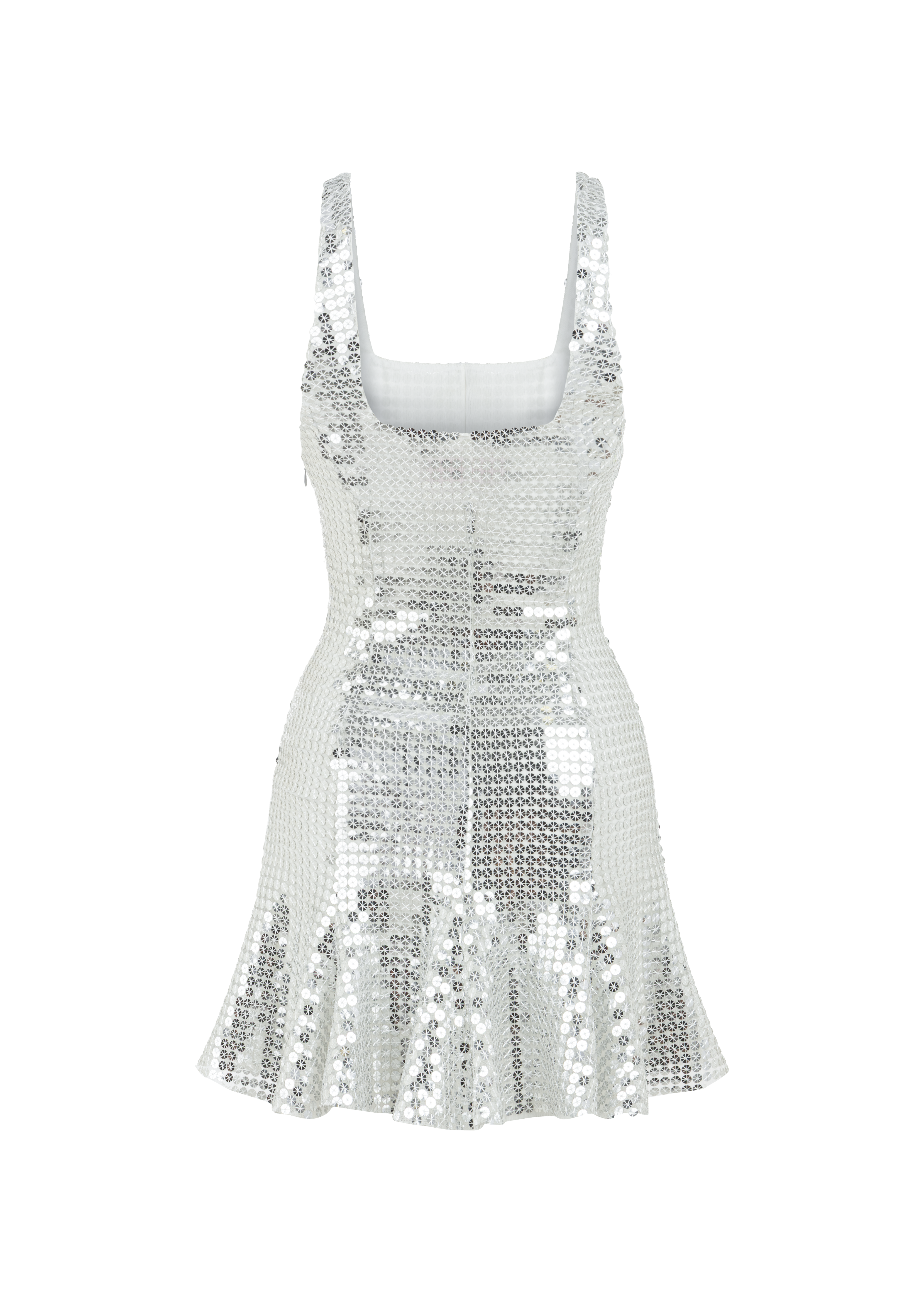 Sparkling sequins and a playful cut give this mini dress a lively edge. Designed to flatter while allowing ease of movement, it feels both modern and fun. In its metallic tone, the Rhea dress design adds instant shine to any occasion.